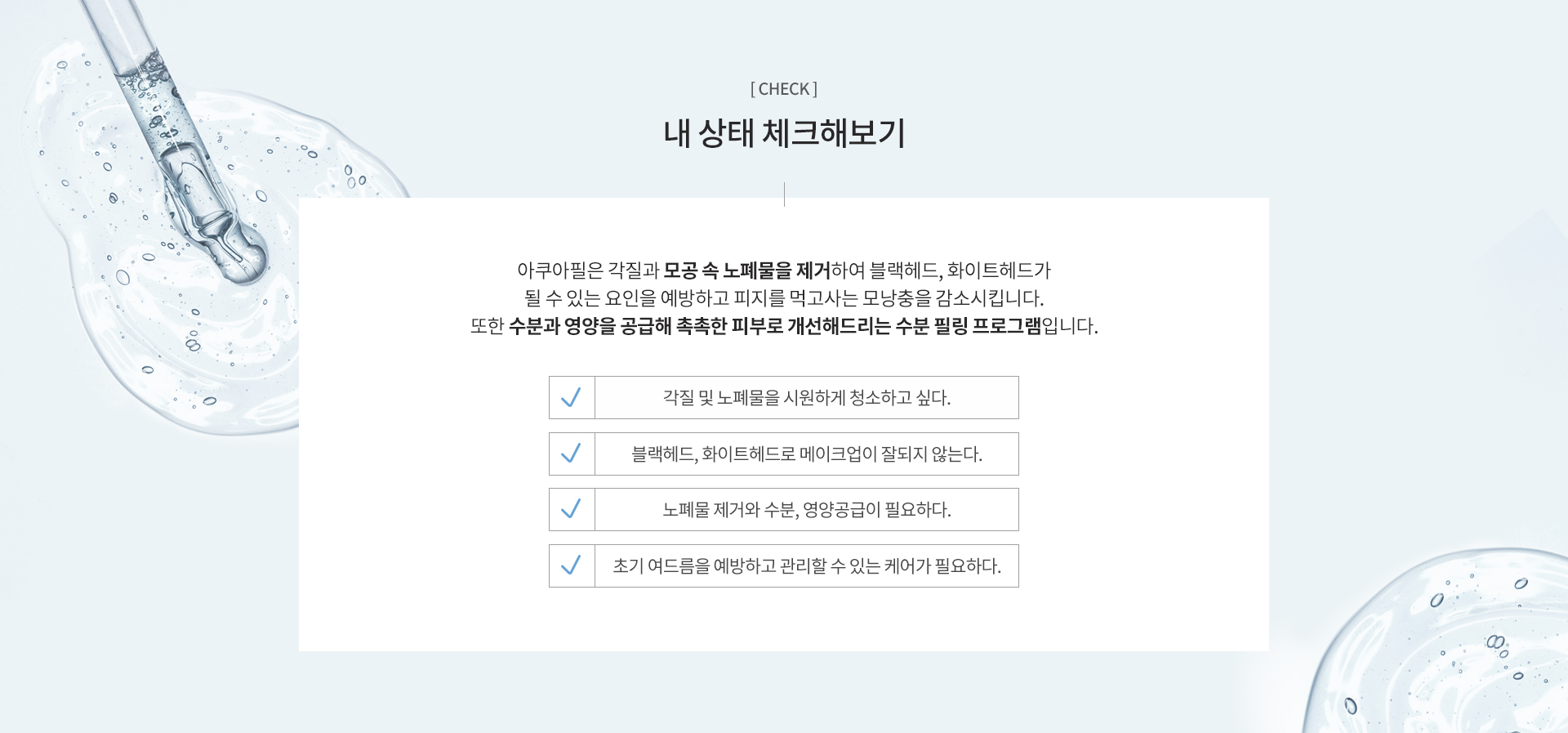 아쿠아필 1·2·3단계는 각각 어떤 효과가 있나요?