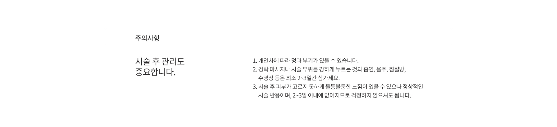한 부위 시술은 약 2cc, 얼굴 전체 시술 시 약 4cc가 주입되며, 피부 상태나 개선 부위에 따라 4~8cc 정도가 사용됩니다. 건조하거나 탄력 저하가 심한 경우, 목·눈가 등 추가 부위를 포함해 맞춤 용량으로 조정이 가능합니다.