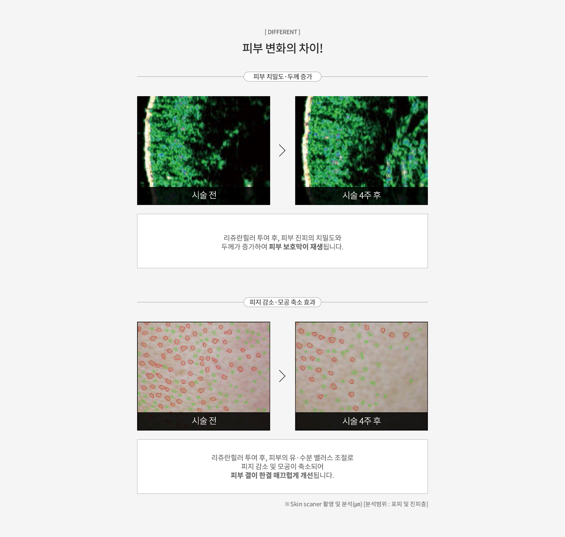 리쥬란힐러는 PN 성분으로 탄력 섬유를 보충하고 재생 능력을 활성화하여 표피 및 진피의 탄력 개선 효과를 볼 수 있습니다.